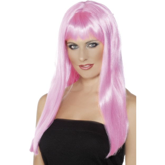 Mystique Wig, Pink, Long with Fringe and Skin Parting